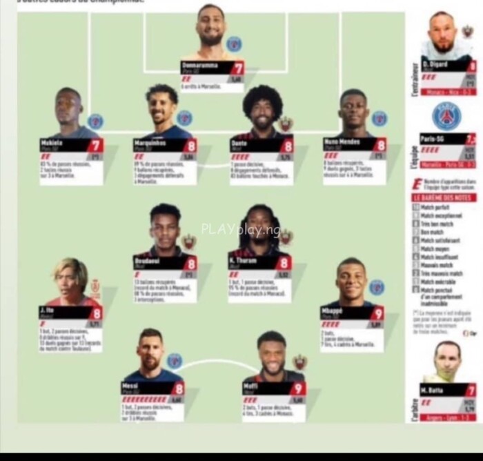 Mbappe was rated 9/10, while Messi scored 8/10.