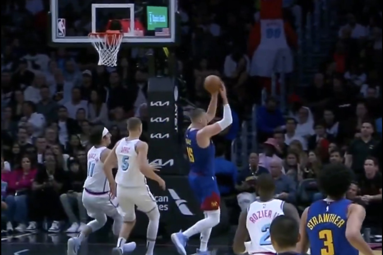 Nikola Jokic has strapped the Denver Nuggets to his back and carried them up the Western Conference standings this season. On the brink of his 30th birthday, Jokic has put together arguably the best season of his career despite already having three MVPs to his name. The Joker did it again on Friday night as the Nuggets traveled to take on the Miami Heat, securing in another triple-double in a win with a play only he could make.