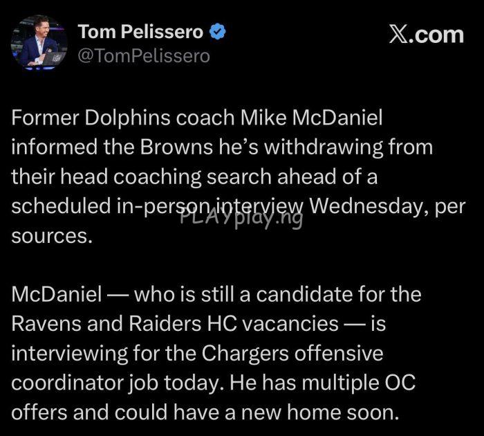 But ahead of a scheduled second interview with the Browns, McDaniel has pulled his name out of the running.